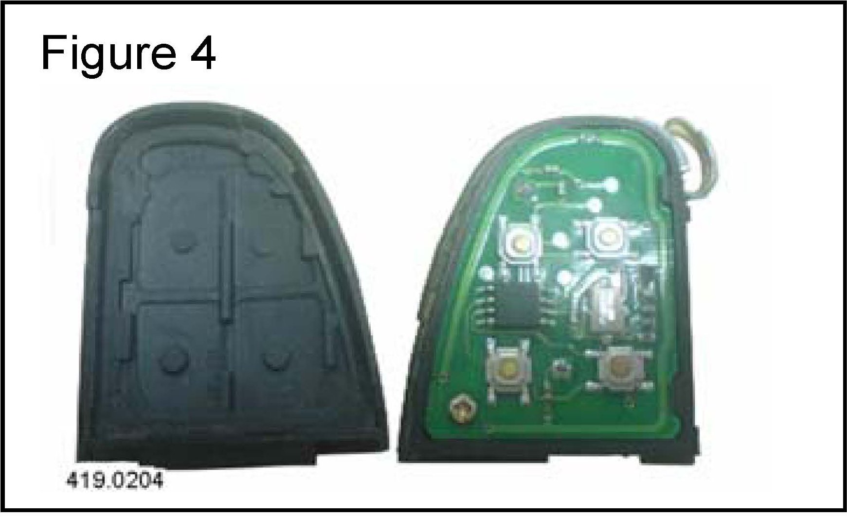 ^ Place the open halves of the remote control key fob on a clean dry surface. (Figure 4)