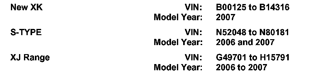 AFFECTED VEHICLE RANGE: