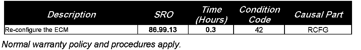 In the case of a customer concern of the above condition, reconfigure the Engine Control Module (ECM) following the repair procedure outlined below.