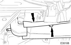 11. CAUTION: To prevent damage to the crossbeam, place a piece of wood between the transmission jack and crossbeam.