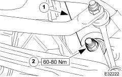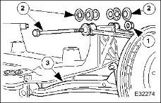 30. CAUTION: Note the position of the fulcrum bolts, as some vehicles are fitted with an eccentric bolt to the rear wishbone arm. See General Procedures section 204-01 form information.