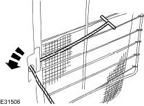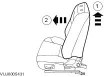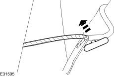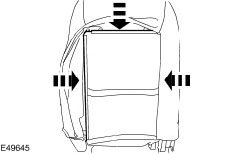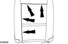 - Pass the front seat backrest trim panel retaining strap through the front seat backrest.