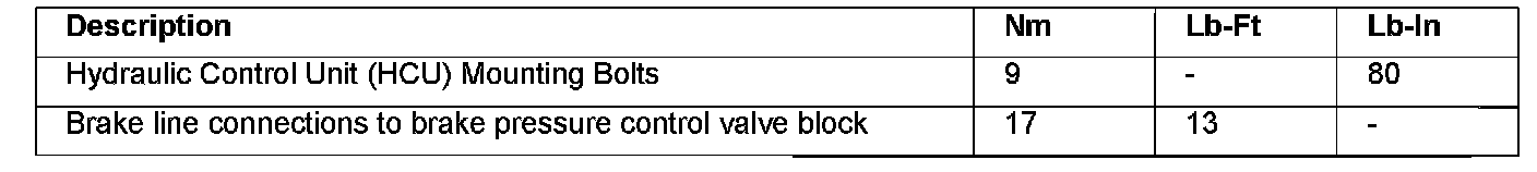Torque Specifications:
