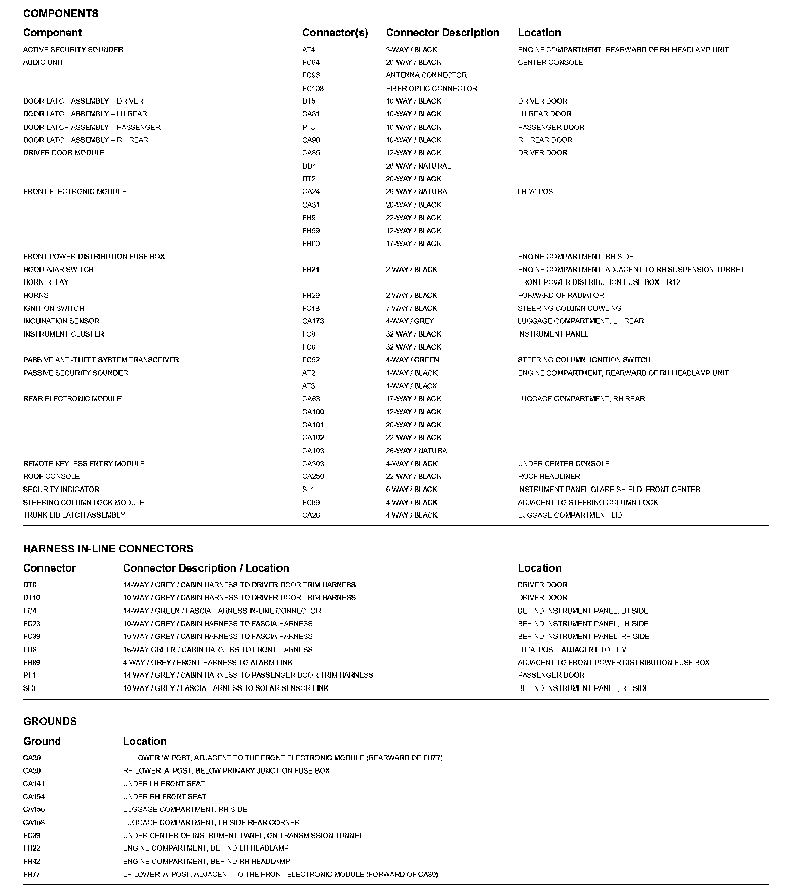 Locations: The location views for Ground Points, In-Line Harness Connectors, Harnesses, and Control Modules depicted within these diagrams can be found at Vehicle/Locations. Locations