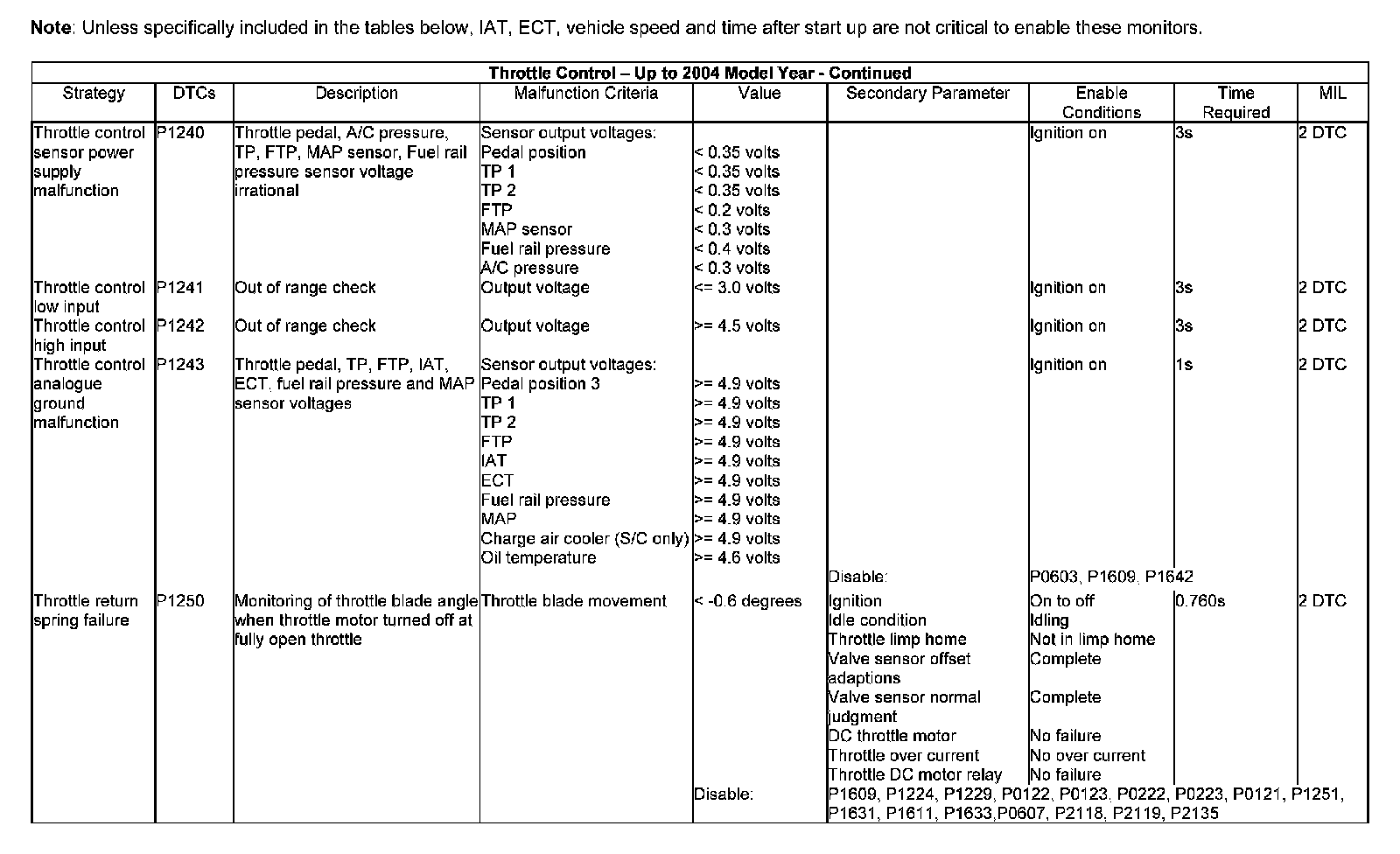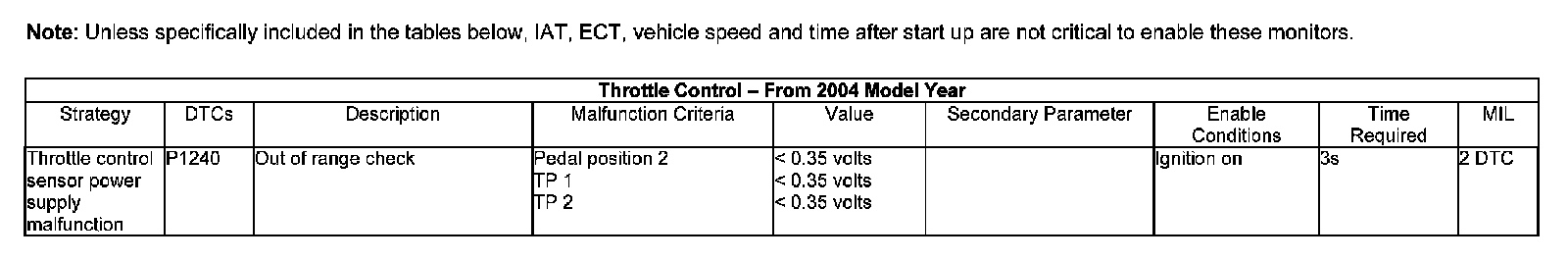 The outputs from two TP sensors and one pedal demand sensor are checked. If they ALL fall below a threshold value then a counter is incremented, otherwise the counter is reset to zero. If the counter reaches a calibrated value, a failure judgment is made.