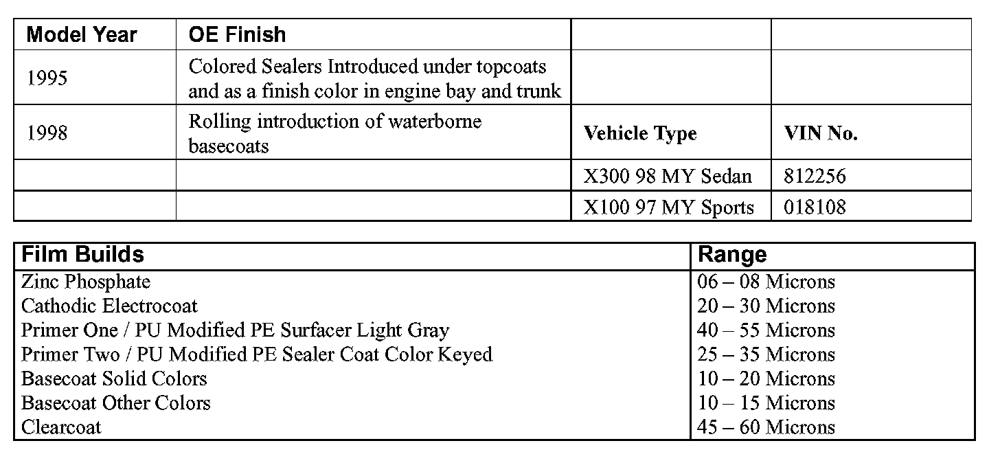 To comply with UK and EEC Environmental Protection, Industry Environmental Protection Act (EPA) legislation regarding Volatile Organic Compound (VOC) emissions, Jaguar has introduced a water base paint system. This system commenced at the introduction of the 1998 Model Year vehicle range i.e.