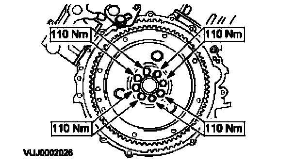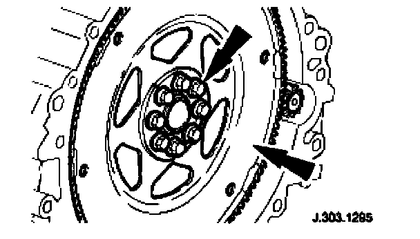 NOTE: Install, but do not tighten, the flexplate retaining bolts.