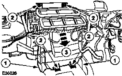 - Care should be taken when handling the heater core and evaporator core housing not to lift it by the heater core inlet or outlet pipes, actuator units or by the AC module. Failure to follow this instruction may result in damage to the heater core and evaporator core housing.