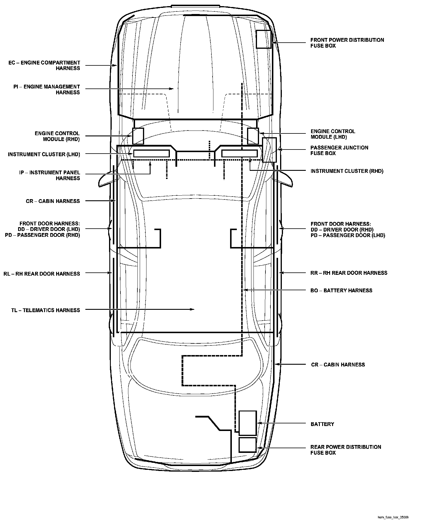 Major Harnesses And Fuse Box Location: