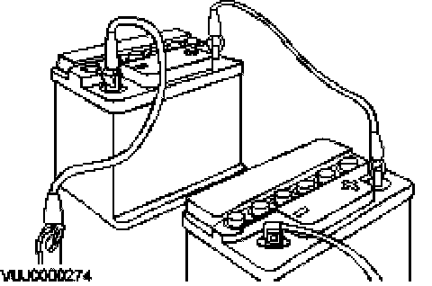 WARNING: Make sure that the ends of the jump leads do not touch each other or ground against the vehicle body at any time while the leads are attached to the battery. A fully charged battery, if shorted through jump leads, can discharge at a rate well above 1000 amps causing violent arcing and very rapid heating of the jump leads and terminals, and can even cause the battery to explode.