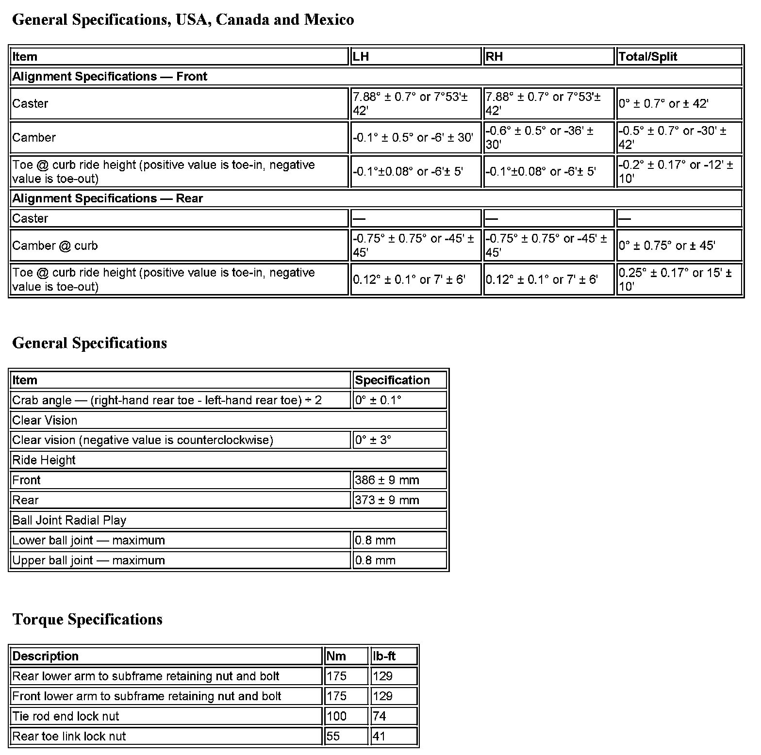 Alignment Specifications: