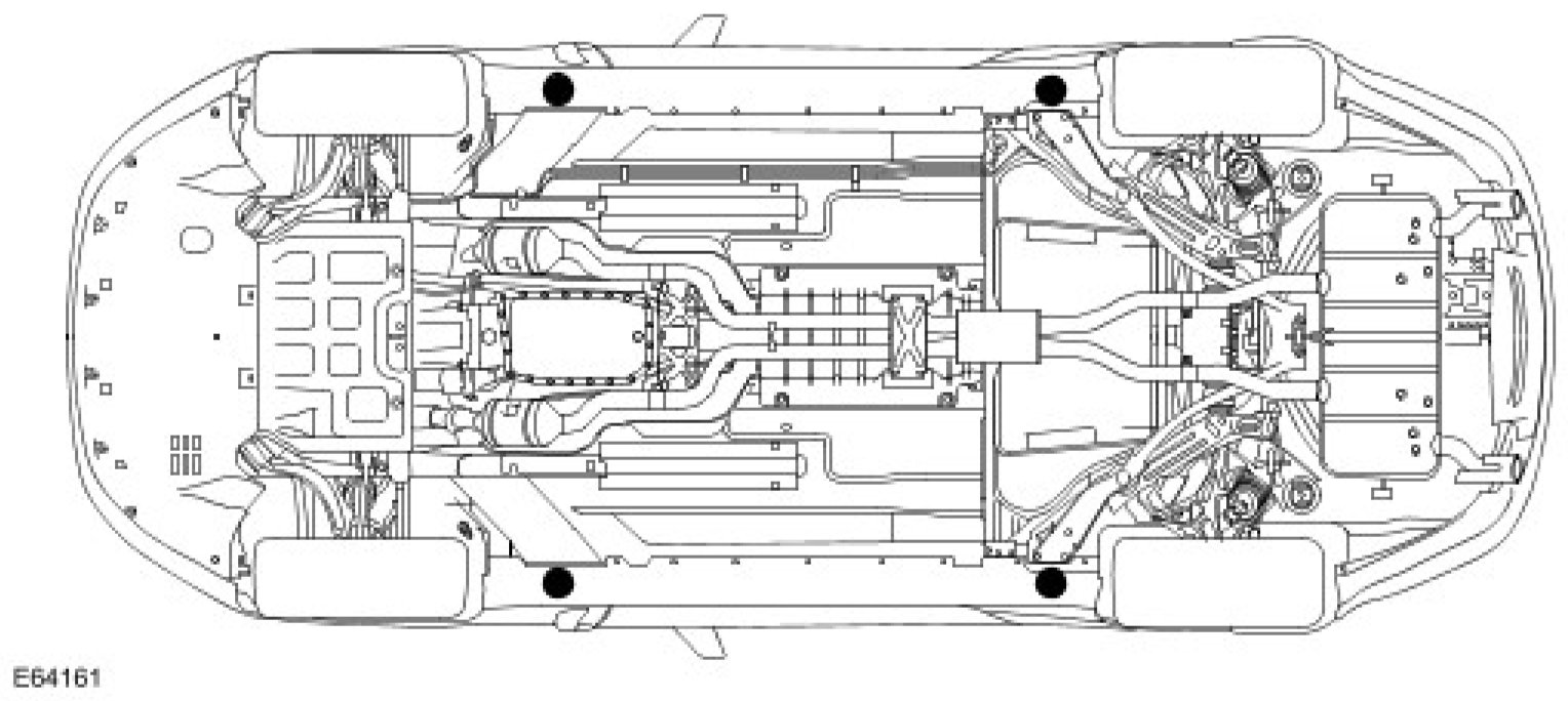 - Never use the rear axle as a lift point. Damage to the rear axle seals and bushes may occur.