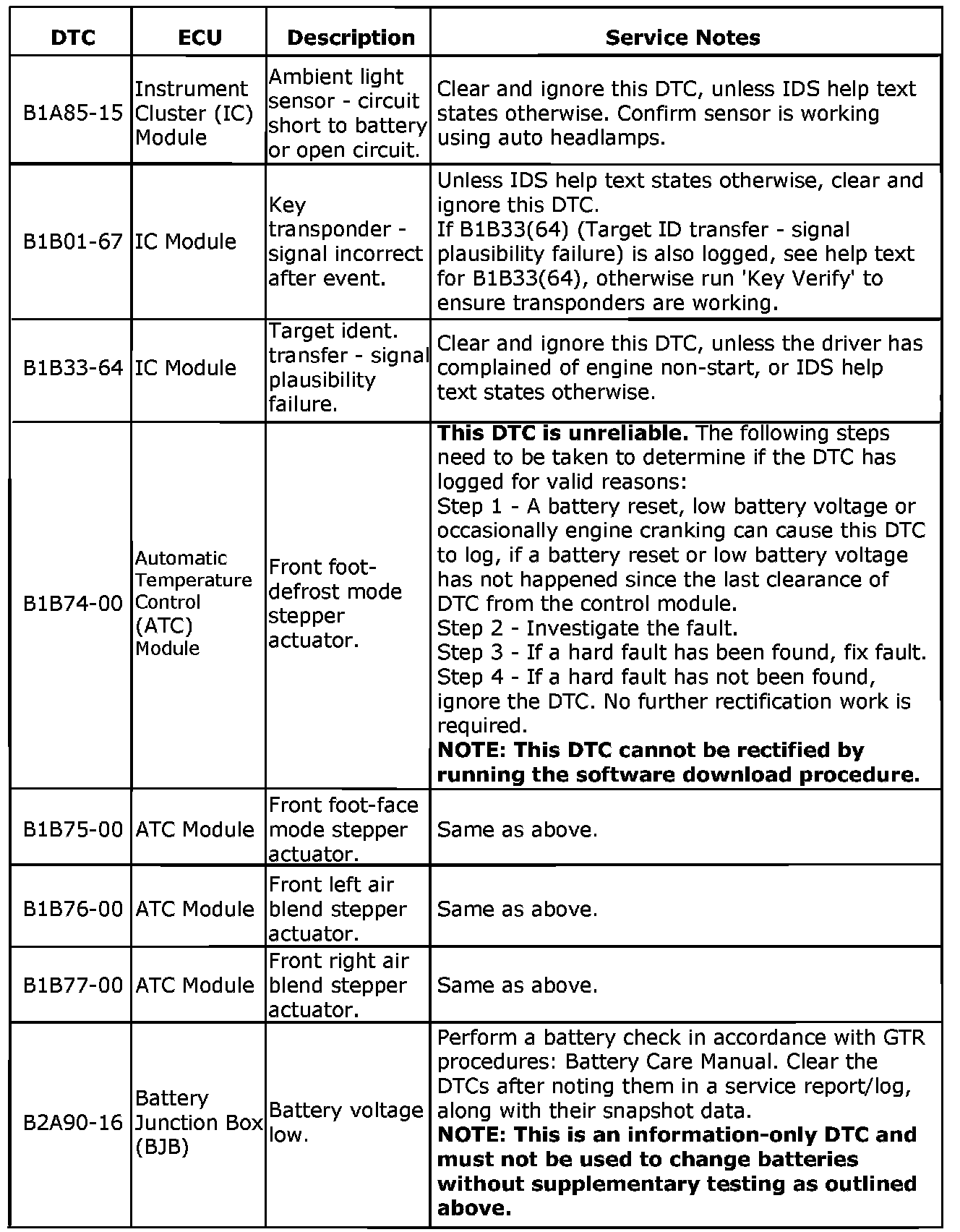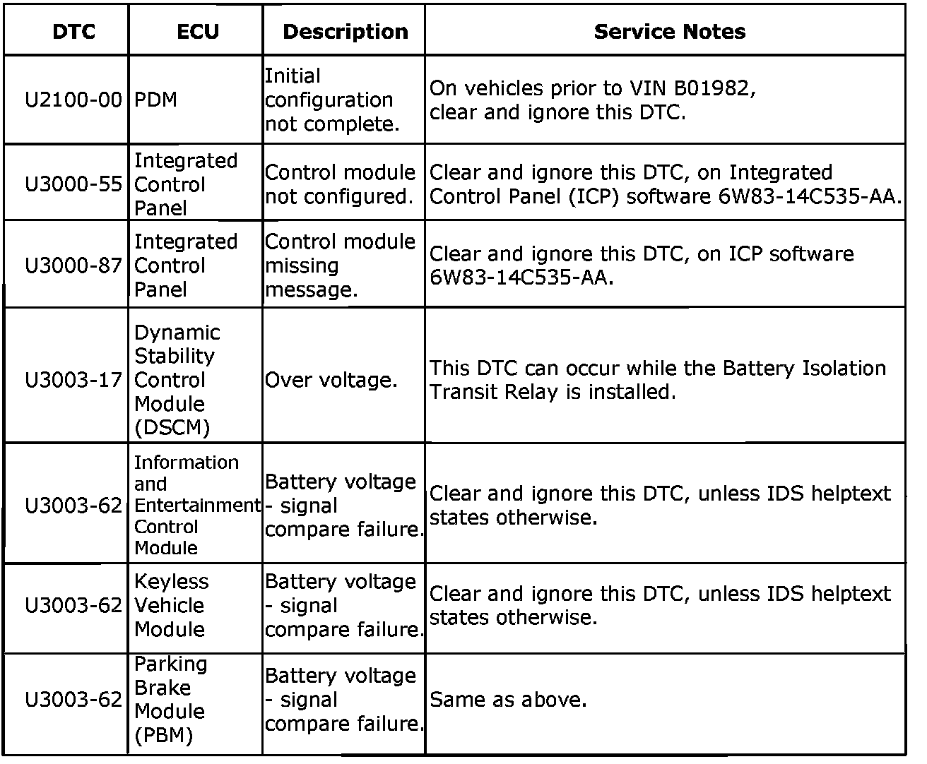 This bulletin identifies a number of DTC's that may be cleared and ignored. The Integrated Diagnostic System (IDS) "help text" may provide alternative actions for some codes.