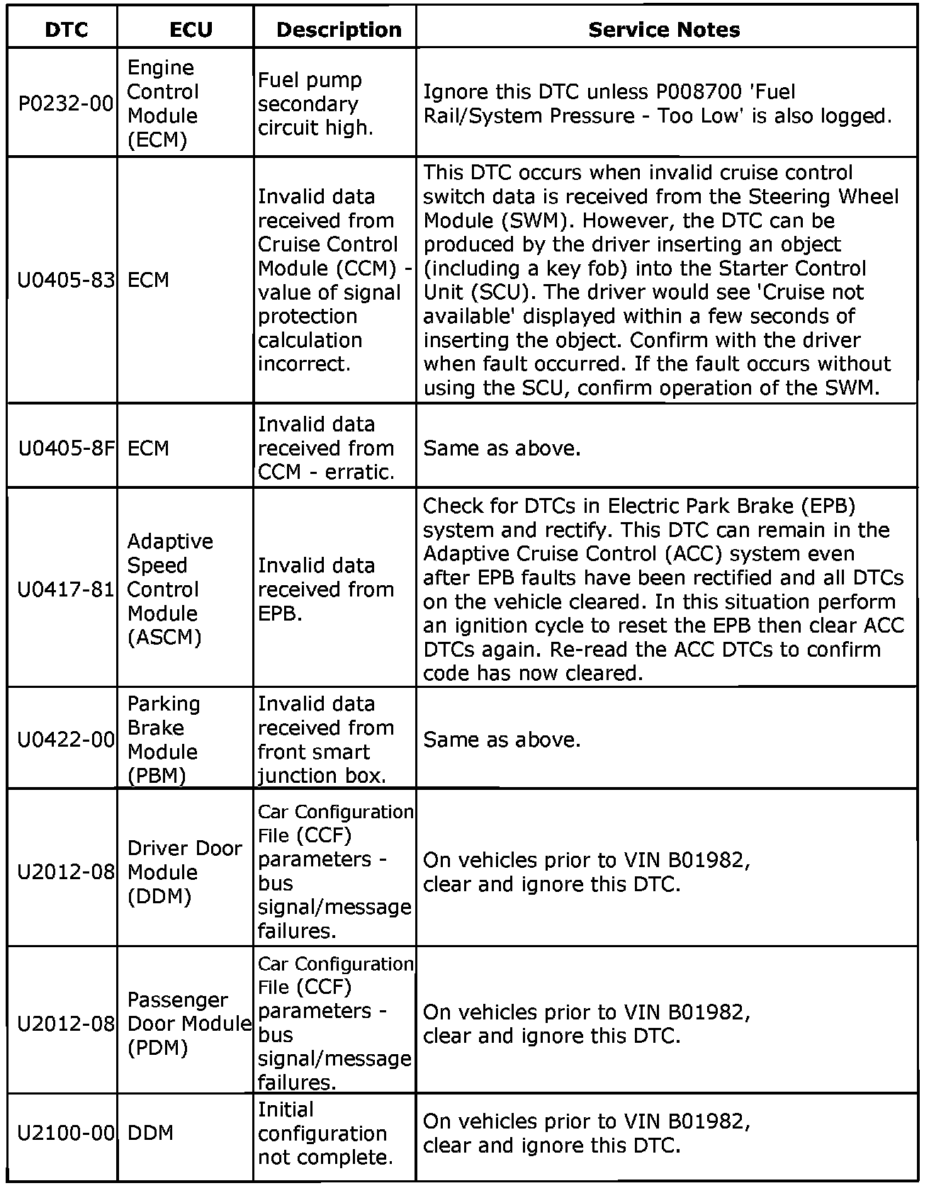 Refer to the appended table of codes associated with various vehicle modules that under most circumstances can be ignored or simply explained by the "Service Notes" information.