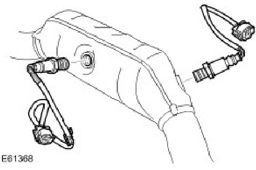 1. Install the HO2S to the catalytic converters and tighten to 45 Nm (33 lb.ft).