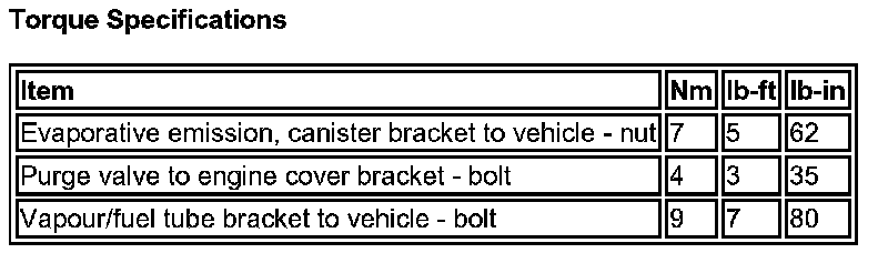 Evaporative Emissions System: Specifications