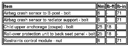 Torque Specifications: