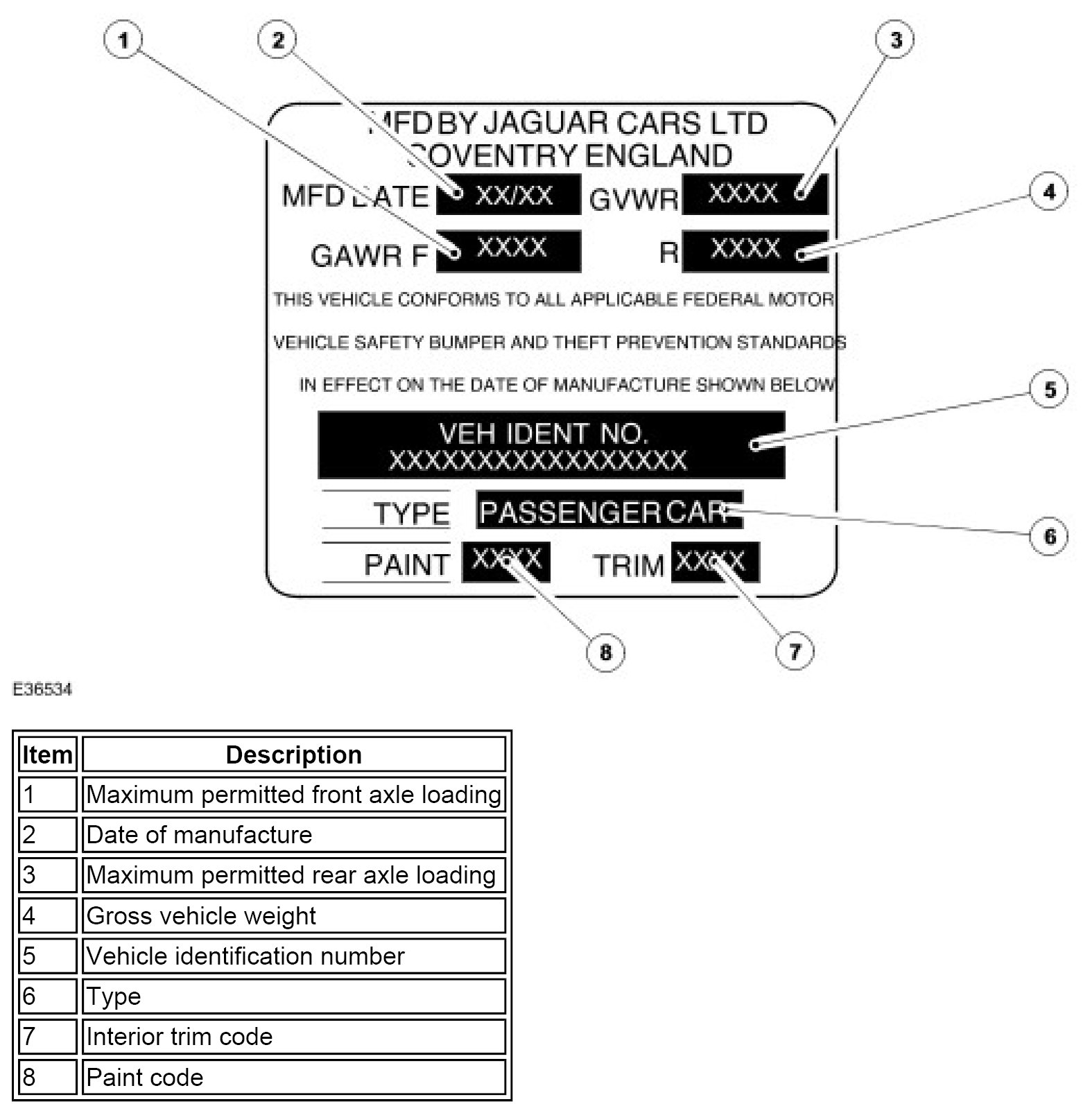 The vehicle certification label also contains the 17 character vehicle identification number.