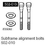 5. CAUTION: To align the sub-frame, install the special bolts in place of the front fixings. Tighten the rear fixings to set the position, remove the special bolts.