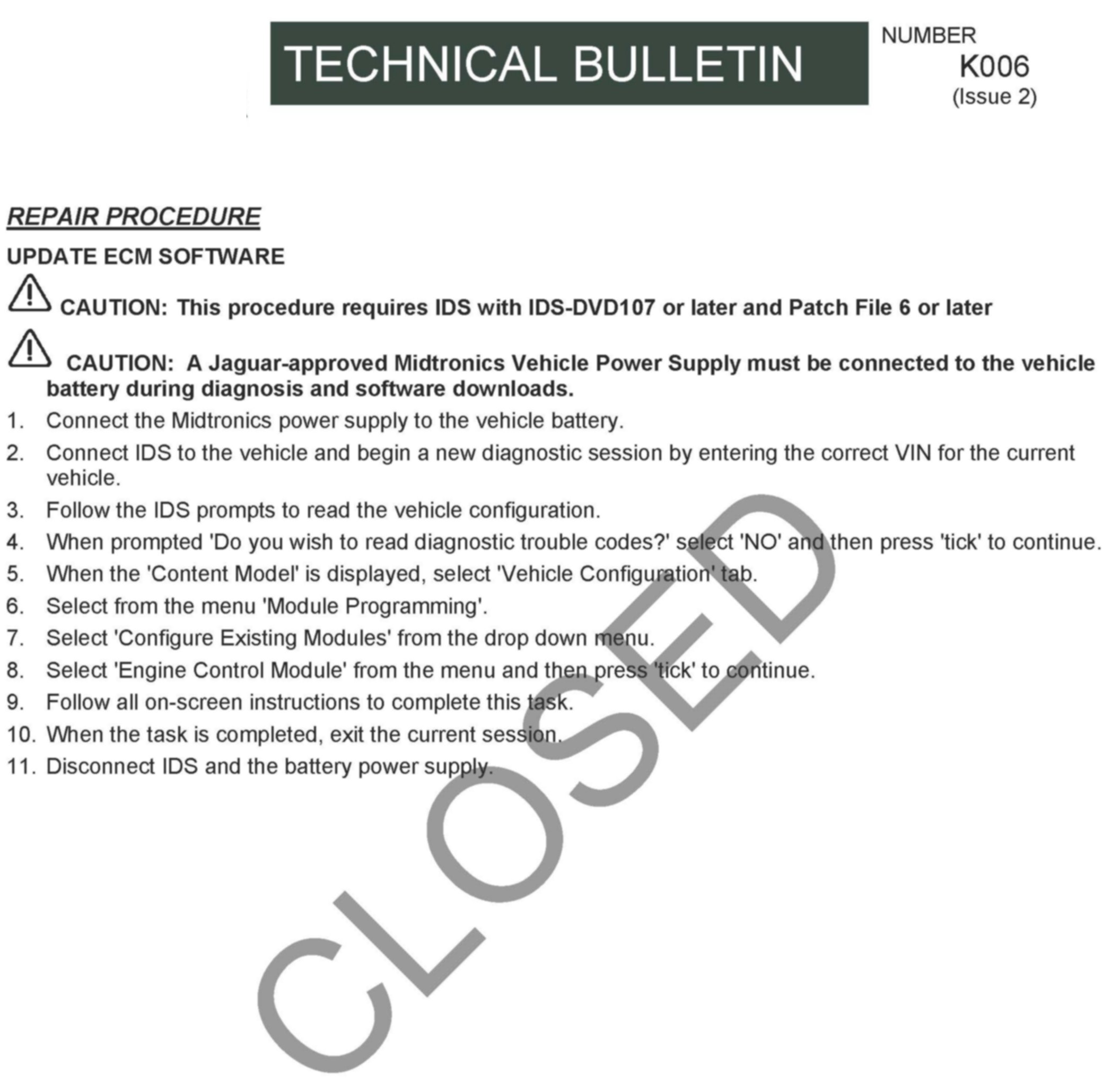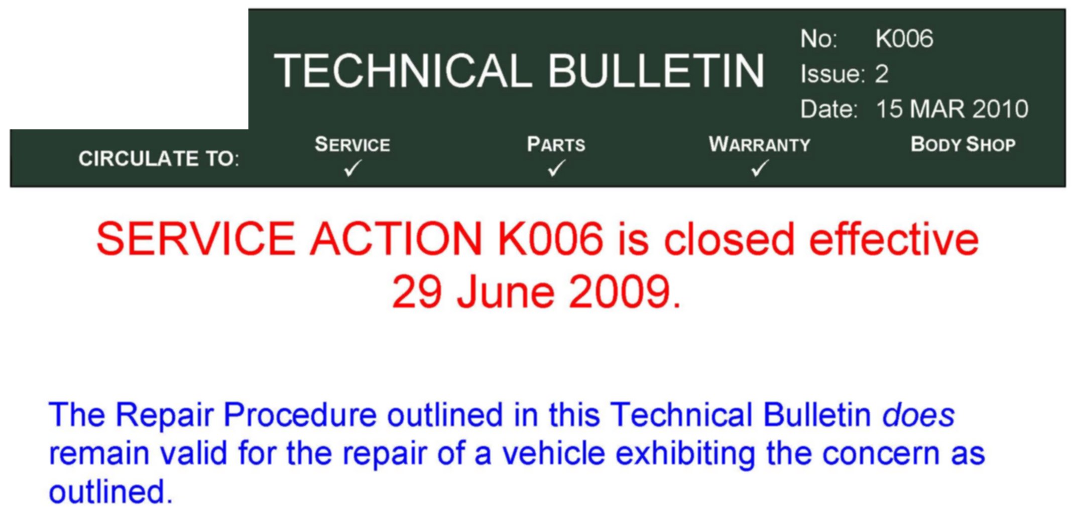 Campaign K006 - CLOSED/Repair Procedure Still Valid