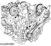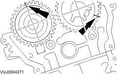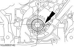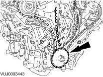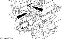 CAUTION: Make sure the timing chain alignment marks are correctly positioned to the crankshaft sprocket and camshaft sprocket alignment marks.