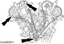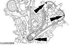 Make sure the left-hand timing chain alignment marks have remained correctly positioned to the camshaft sprocket and crankshaft sprocket alignment marks.
