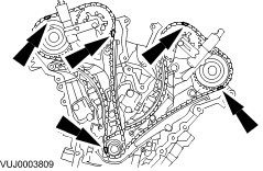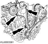 11. CAUTION: Do not manually adjust the timing chain tensioner.