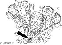 9. CAUTION: Make sure the timing chain slack is on the tensioned side of the timing chain.