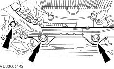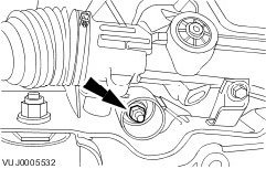 Remove the front subframe front retaining bolt.