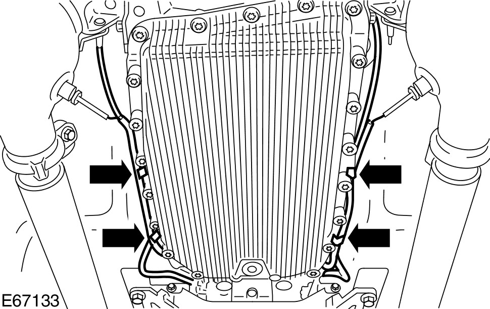 2 Attach the catalytic converter temperature sensor wiring harness onto the fluid pan.