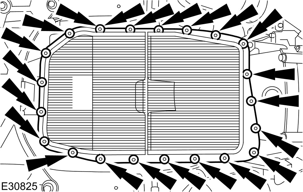 1 Install the new fluid pan, gasket and filter.