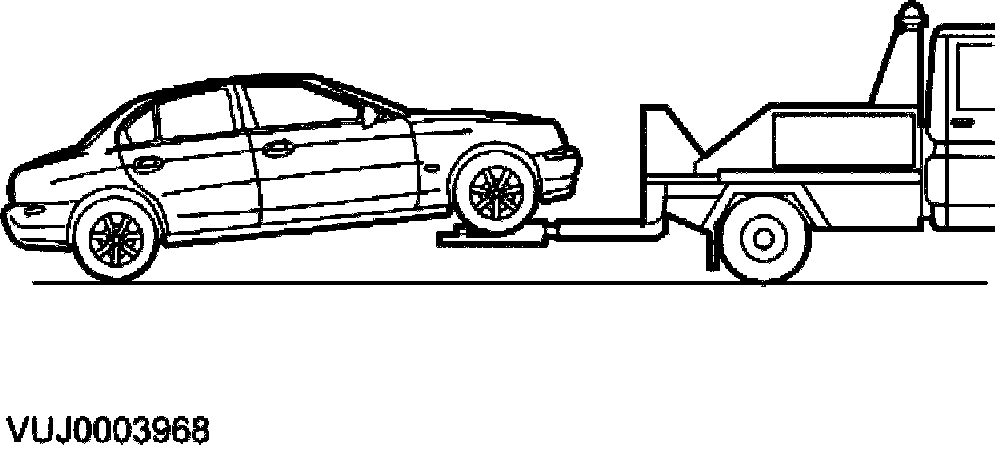 CAUTION: A vehicle with a defective transmission must be towed by front suspended tow.
