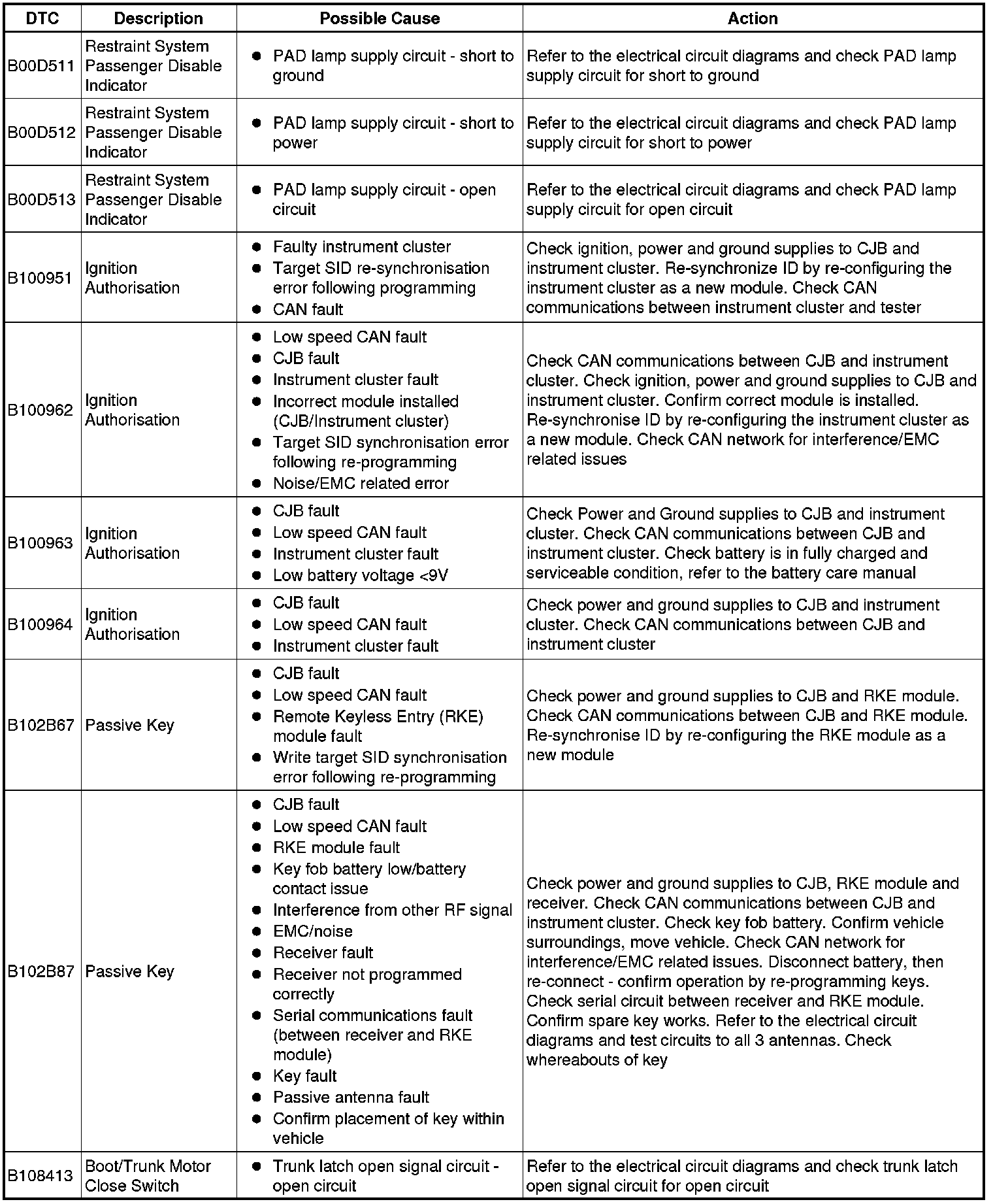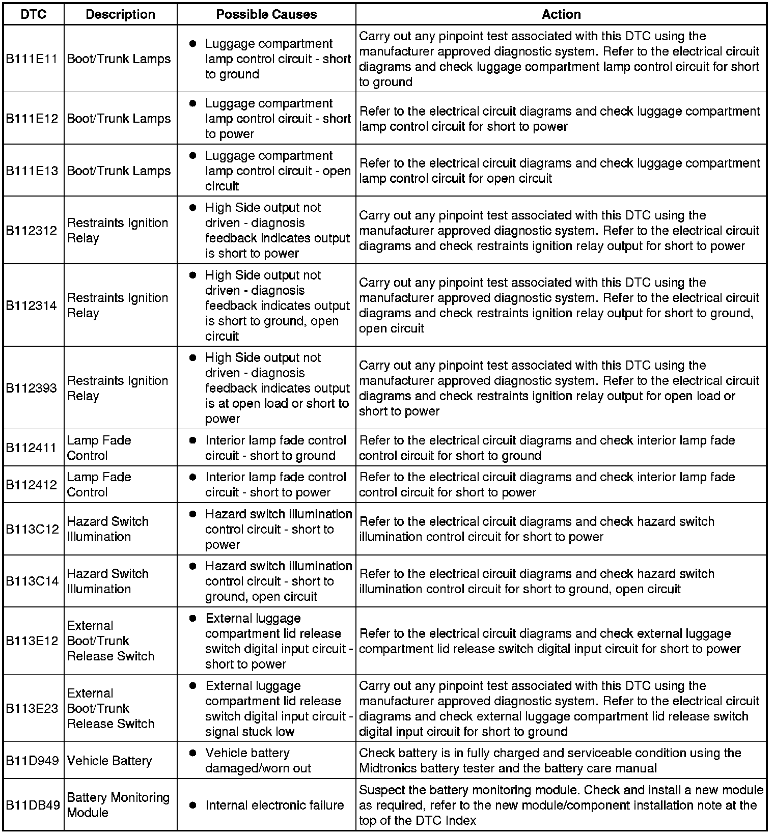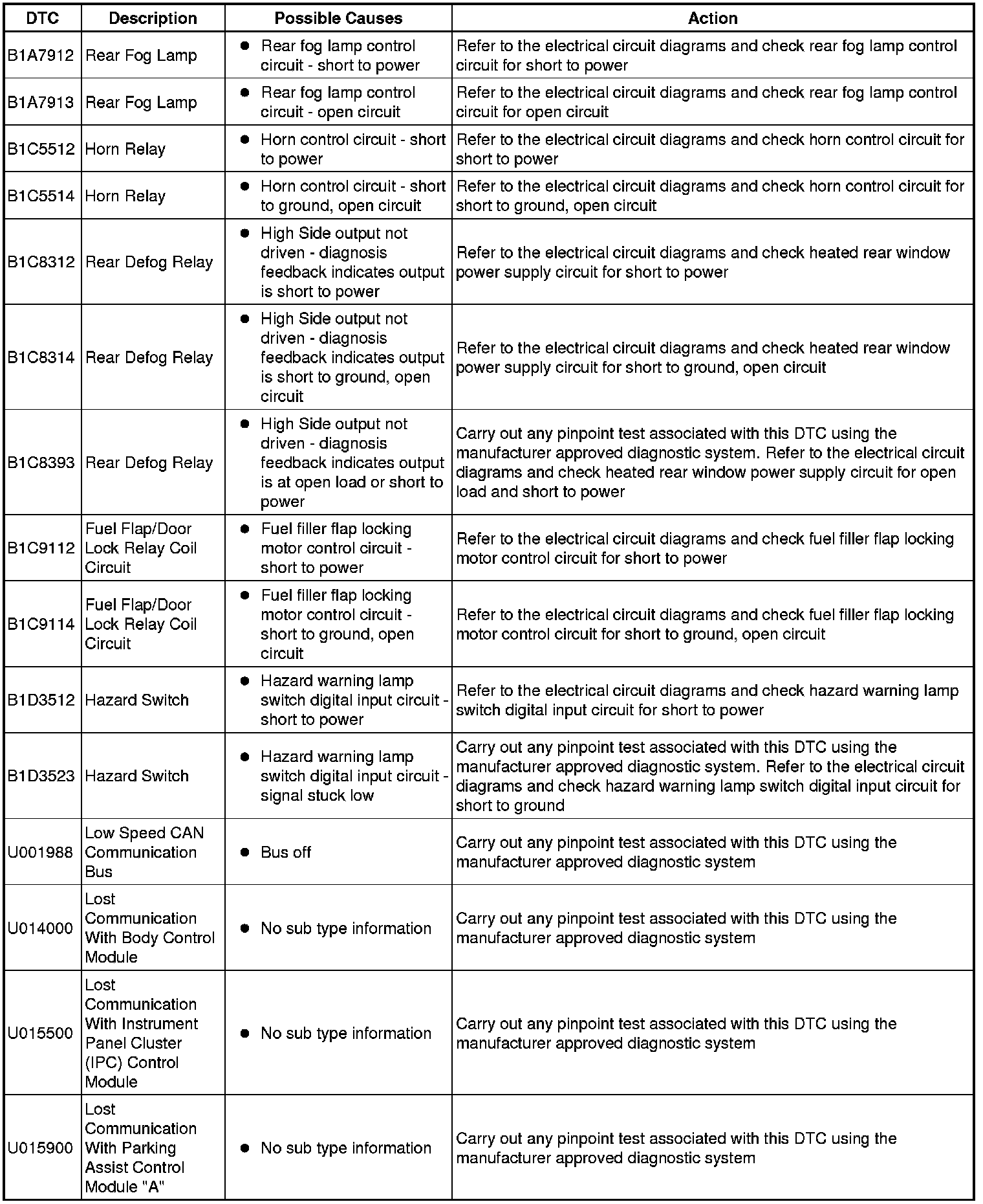 Generic scan tools may not read the codes listed, or may read only five digit codes. Match the five digits from the scan tool to the first five digits of the seven digit code listed to identify the fault (the last two digits give extra information read by the manufacturer-approved diagnostic system).