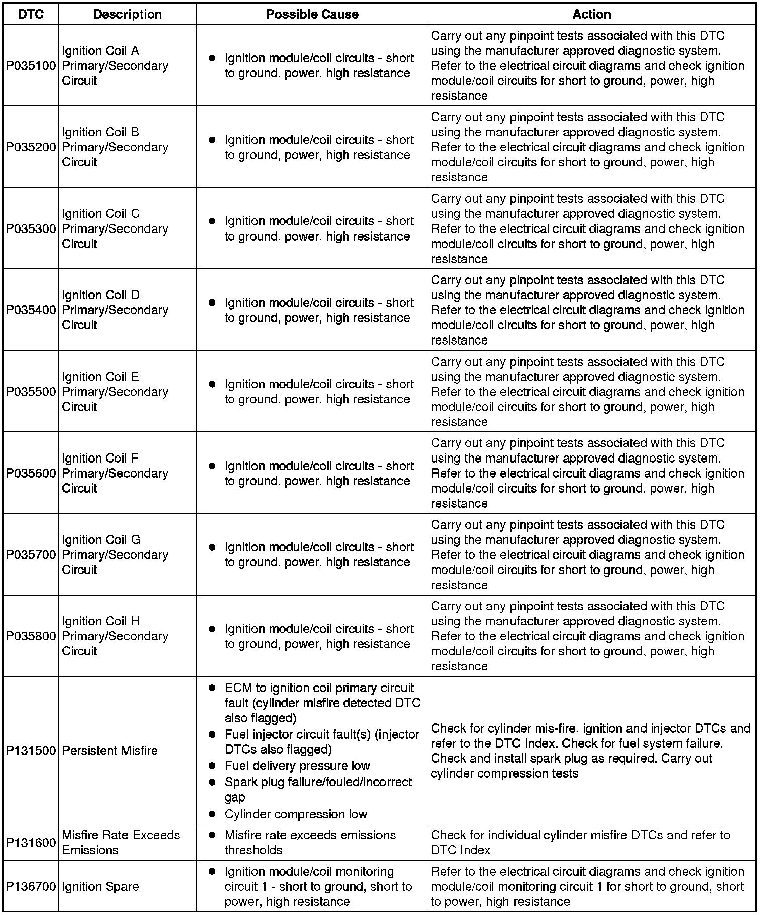 If DTCs are recorded and, after the pinpoint tests have been carried out, the fault is not present, an intermittent concern may be the cause. Always check for loose connections and corroded terminals.