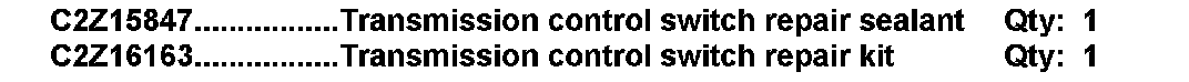 EACH TRANSMISSION CONTROL SWITCH REPAIR KIT (C2Z16163) AND SEALANT SYRINGE (C2Z15847) WILL REPAIR 40 VEHICLES; OPTION CODE B, C, F, ORG MAY CLAIMED ONLY FOR VEHICLE 1 OF 40 REPAIRED.