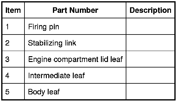 The hood actuators are pyrotechnic air bags. The hood actuators are located just forward of the hood latches on either side of the hood. The actuators comprise a pyrotechnic device to raise the hood, a secondary hood latch mechanism and a tether sleeve. Once fired a locking device mounted on top of the actuator couples with the secondary hood latch before the airbag inflates to raise the hood. This ensures that the hood can only deploy to a pre-determined height (approximately 130 mm). As the hood actuator is fired two prongs located in the secondary latch housing are moved out of their retaining clamp. The prongs are spring loaded to grip the secondary hood latch striker securing it to the actuator tether cone. Hood Actuator and Secondary Latch.