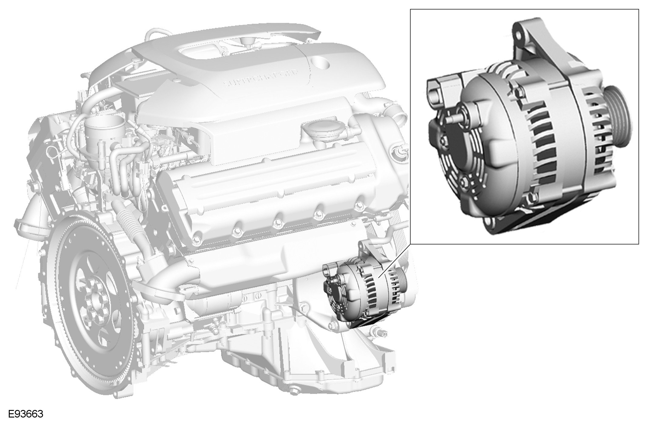 Generator on vehicles with supercharger shown, generator on vehicles without supercharger is the same.