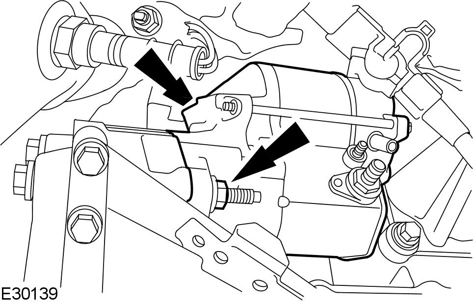 - Remove the starter motor retaining bolts.
