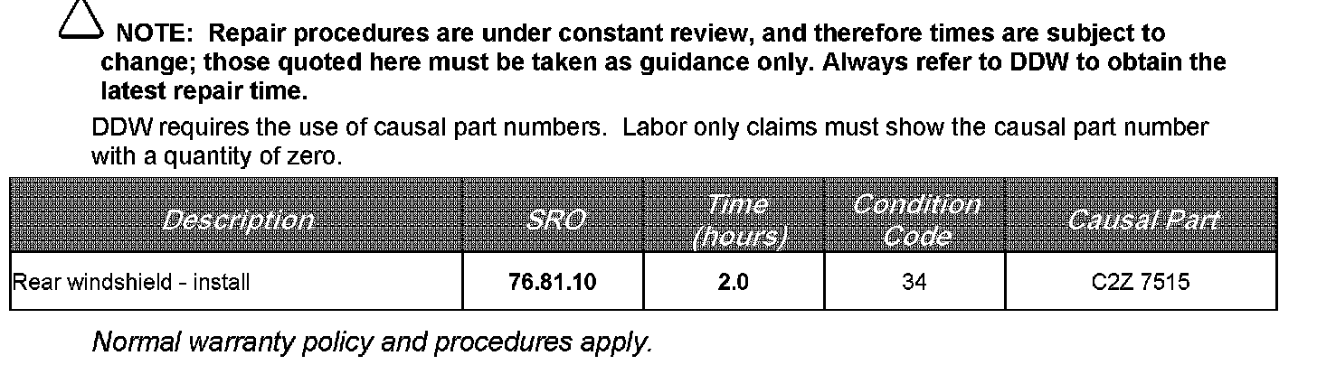 INSPECT REAR WINDSHIELD DATE CODE / REPLACE REAR WINDSHIELD