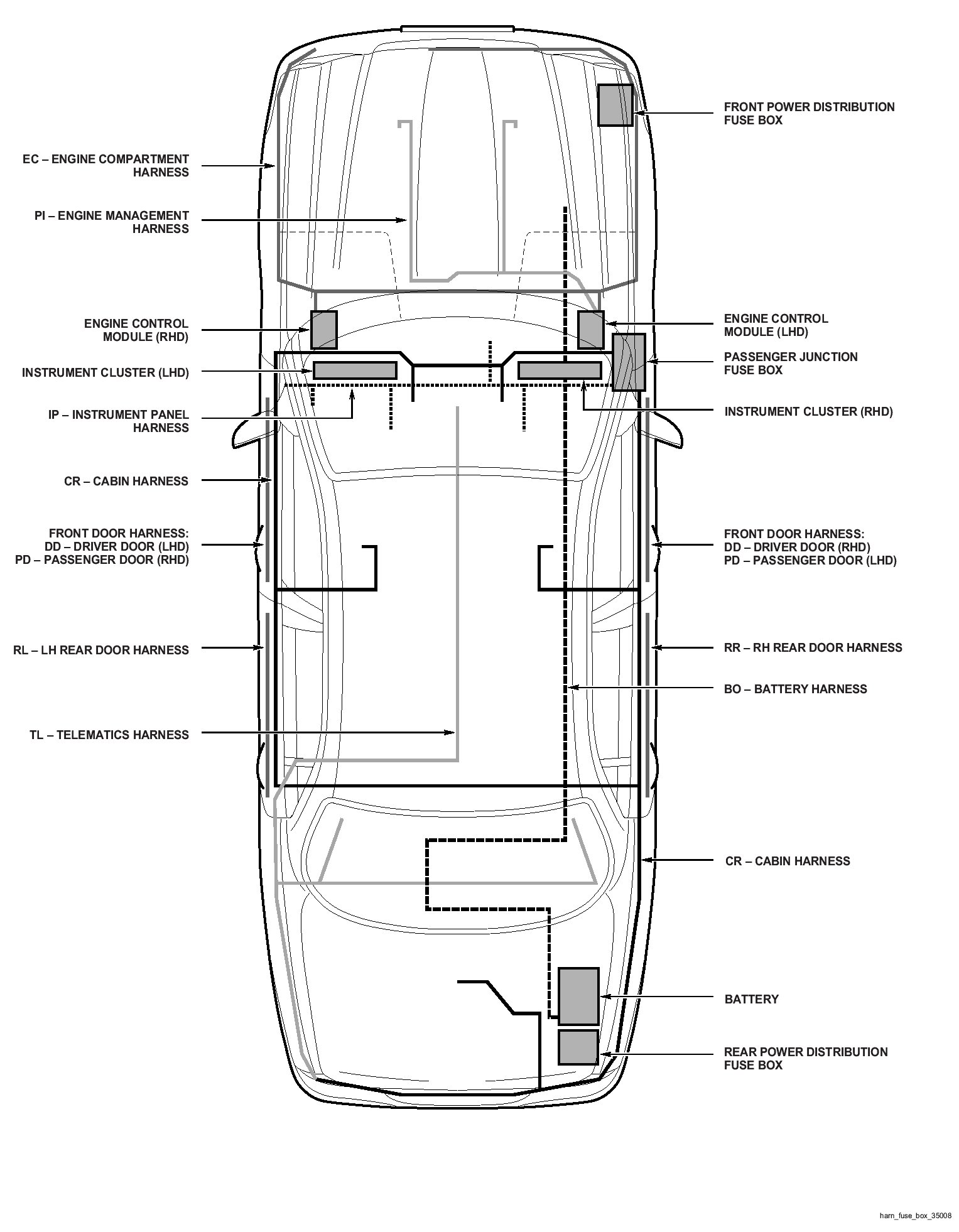 Major Harnesses and Fusebox Location: