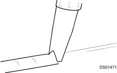 6. Cut adhesive nozzle to achieve a triangular section bead 7 mm (0.28 in) wide by 10 mm (0.39 in) high.