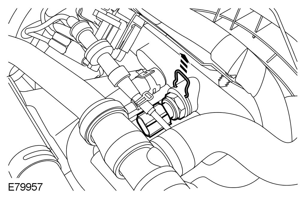 CAUTION: Engine coolant will damage the paint finished surfaces. If spilt, immediately remove the coolant and clean the area with water.
