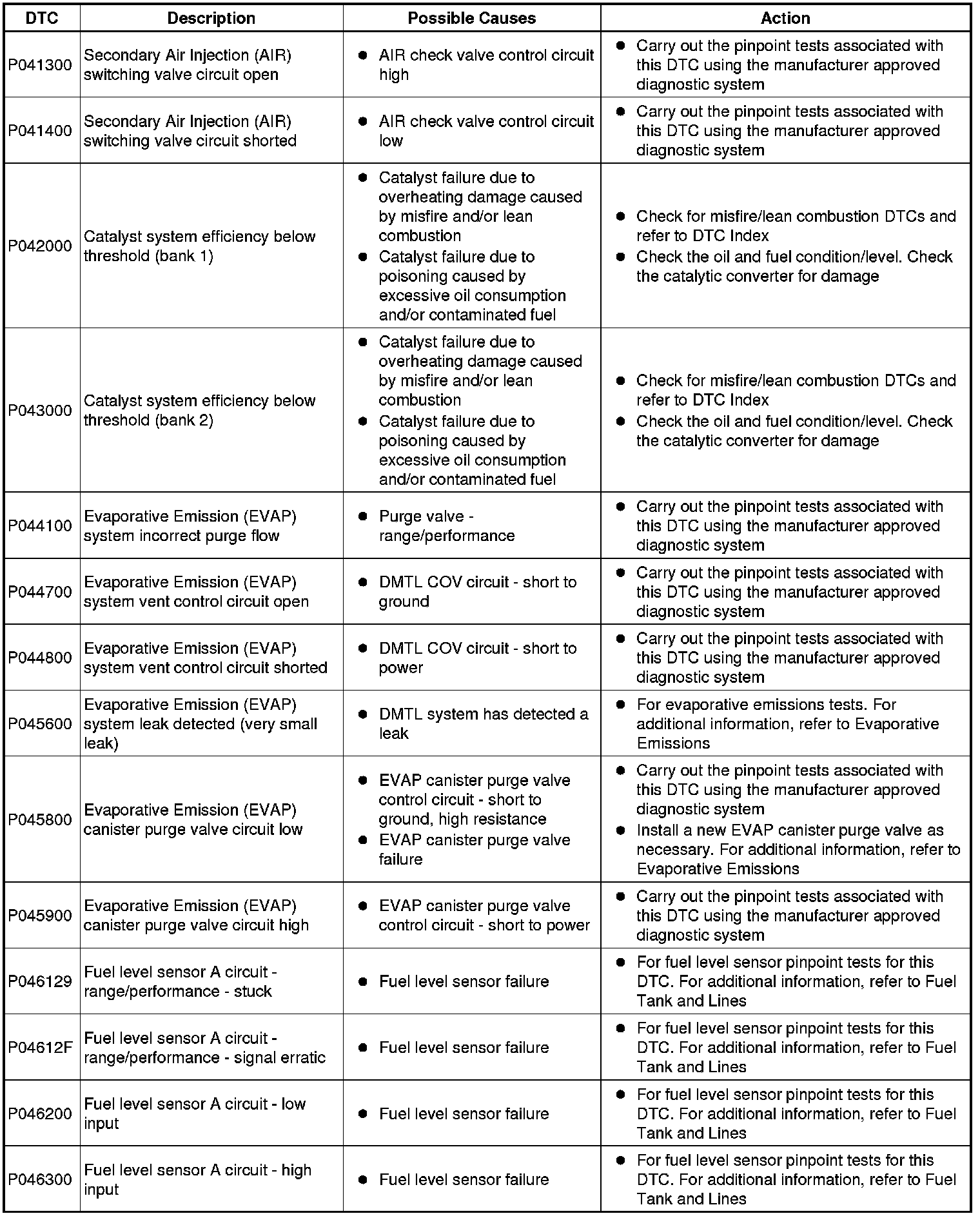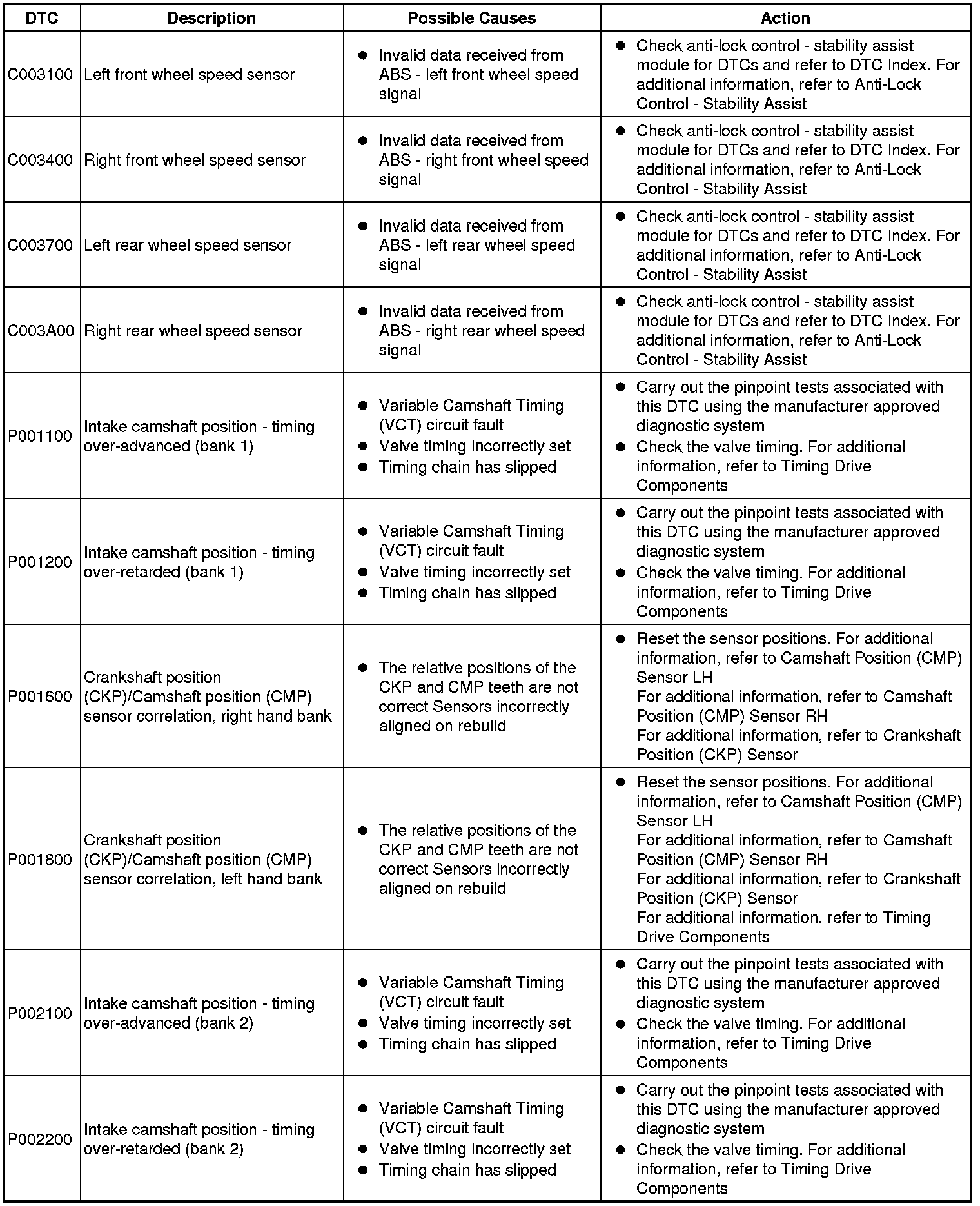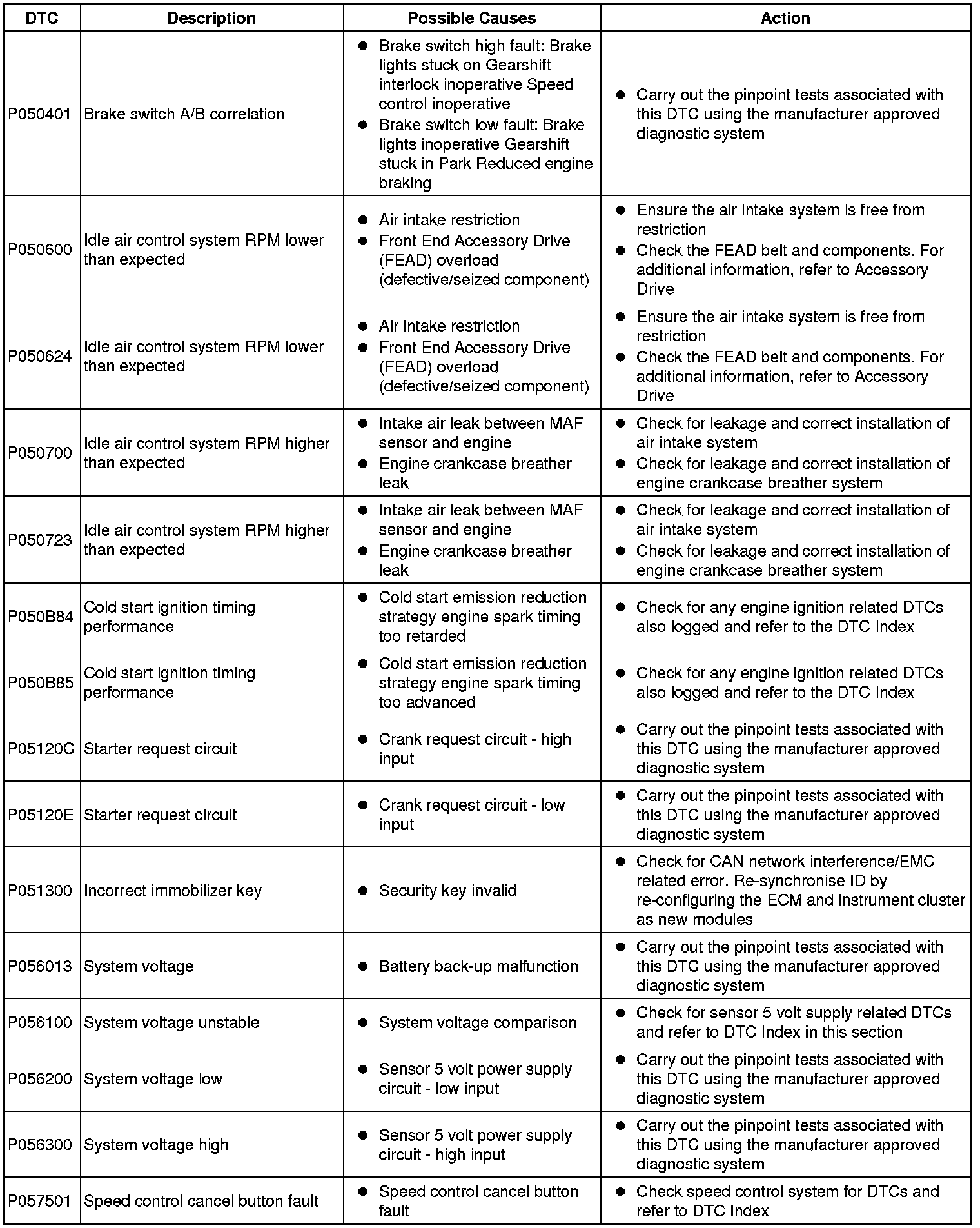 Generic scan tools may not read the codes listed, or may read only five digit codes. Match the five digits from the scan tool to the first five digits of the seven digit code listed to identify the fault (the last two digits give additional information read by the manufacturer-approved diagnostic system).