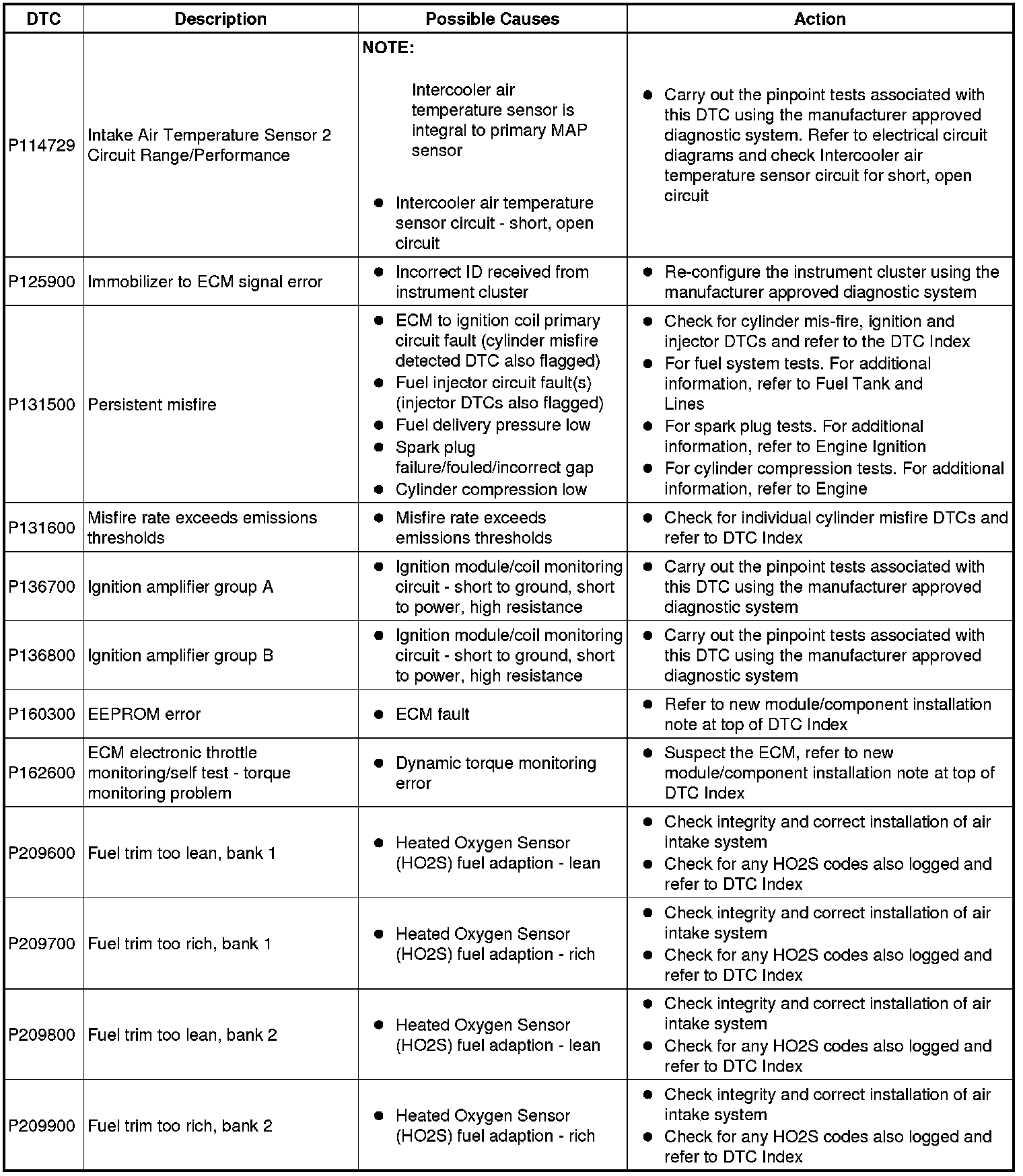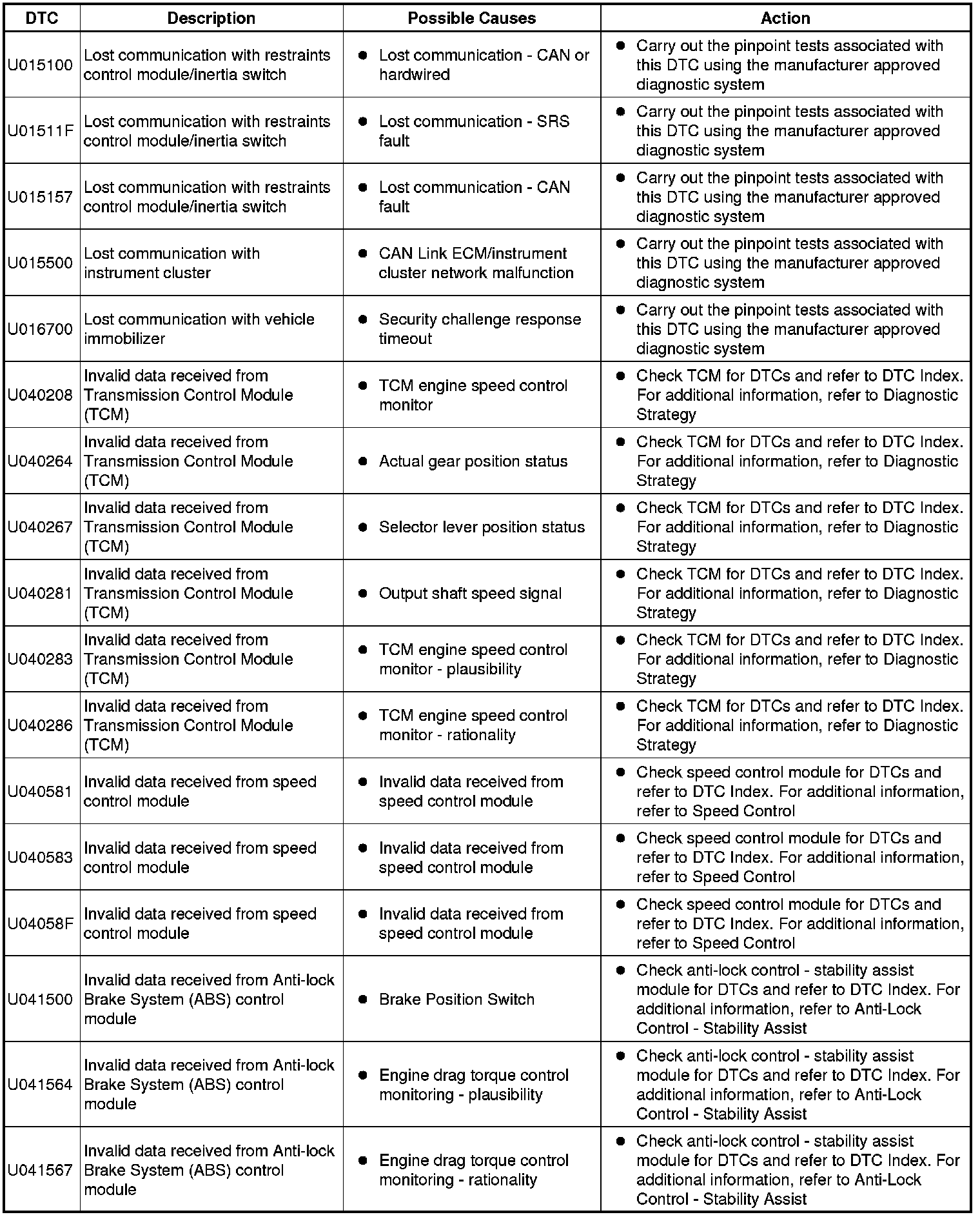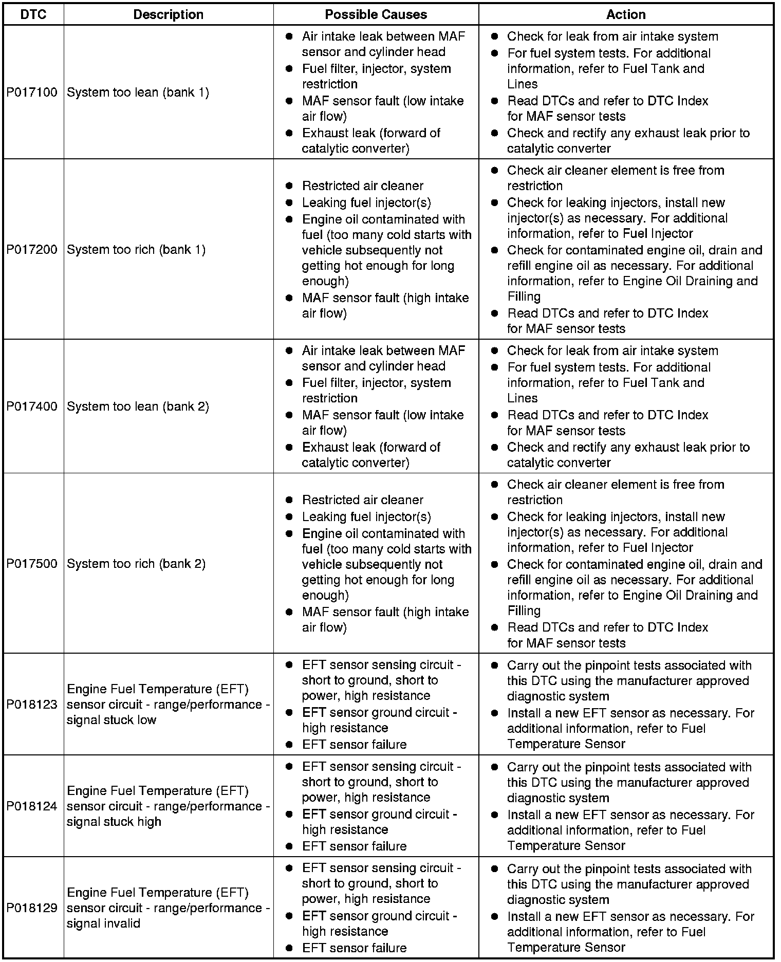 Generic scan tools may not read the codes listed, or may read only five digit codes. Match the five digits from the scan tool to the first five digits of the seven digit code listed to identify the fault (the last two digits give additional information read by the manufacturer-approved diagnostic system).