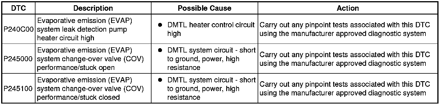 If DTCs are recorded and, after performing the pinpoint tests, a fault is not present, an intermittent concern may be the cause. Always check for loose connections and corroded terminals.