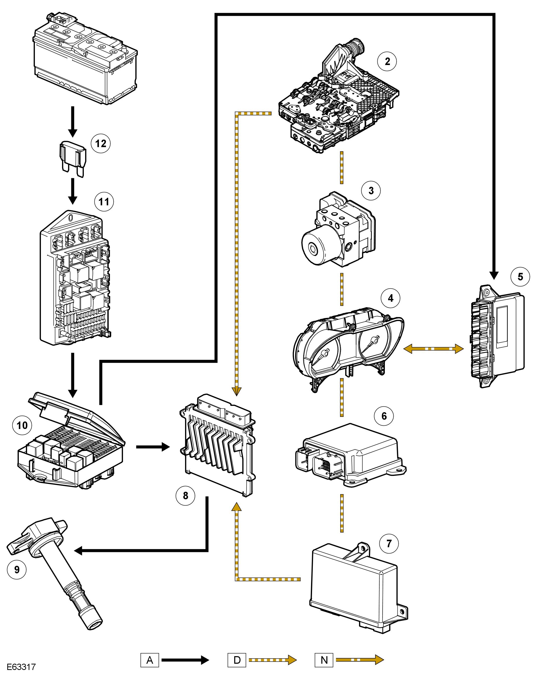 A = Hardwired connections; D = High speed CAN bus; N=Medium speed CAN bus