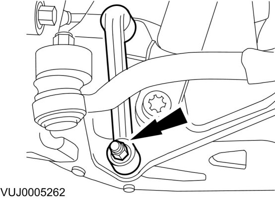 Remove the stabilizer bar link lower retaining bolt and nut and remove the stabilizer bar link.