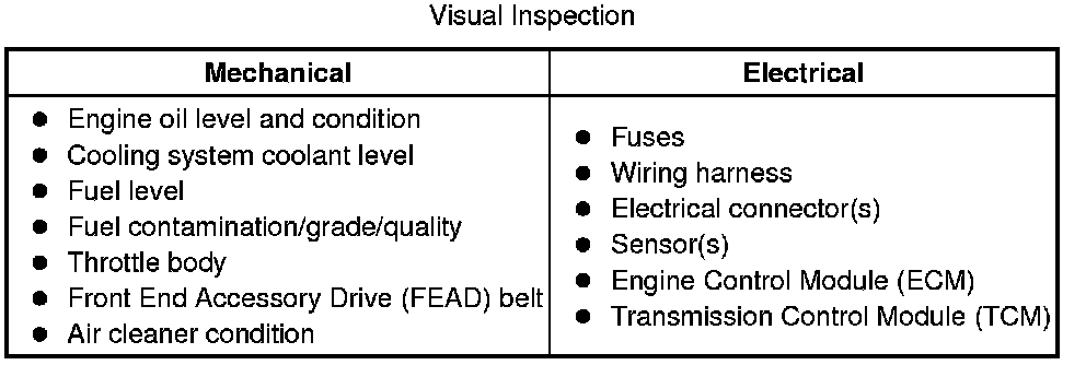 4 If the cause is not visually evident, verify the customer concern and refer to the Symptom Chart below, alternatively, check for Diagnostic Trouble Codes (DTCs) and refer to the DTC Index.