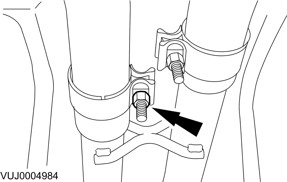 5 Loosen the catalytic converter exhaust clamps and release the front silencer.