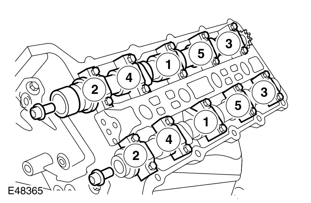 Cylinder Head Torque & Sequence / Bolt re-usability Service and RepairCamshafts LHInstall the camshaft bearing caps.